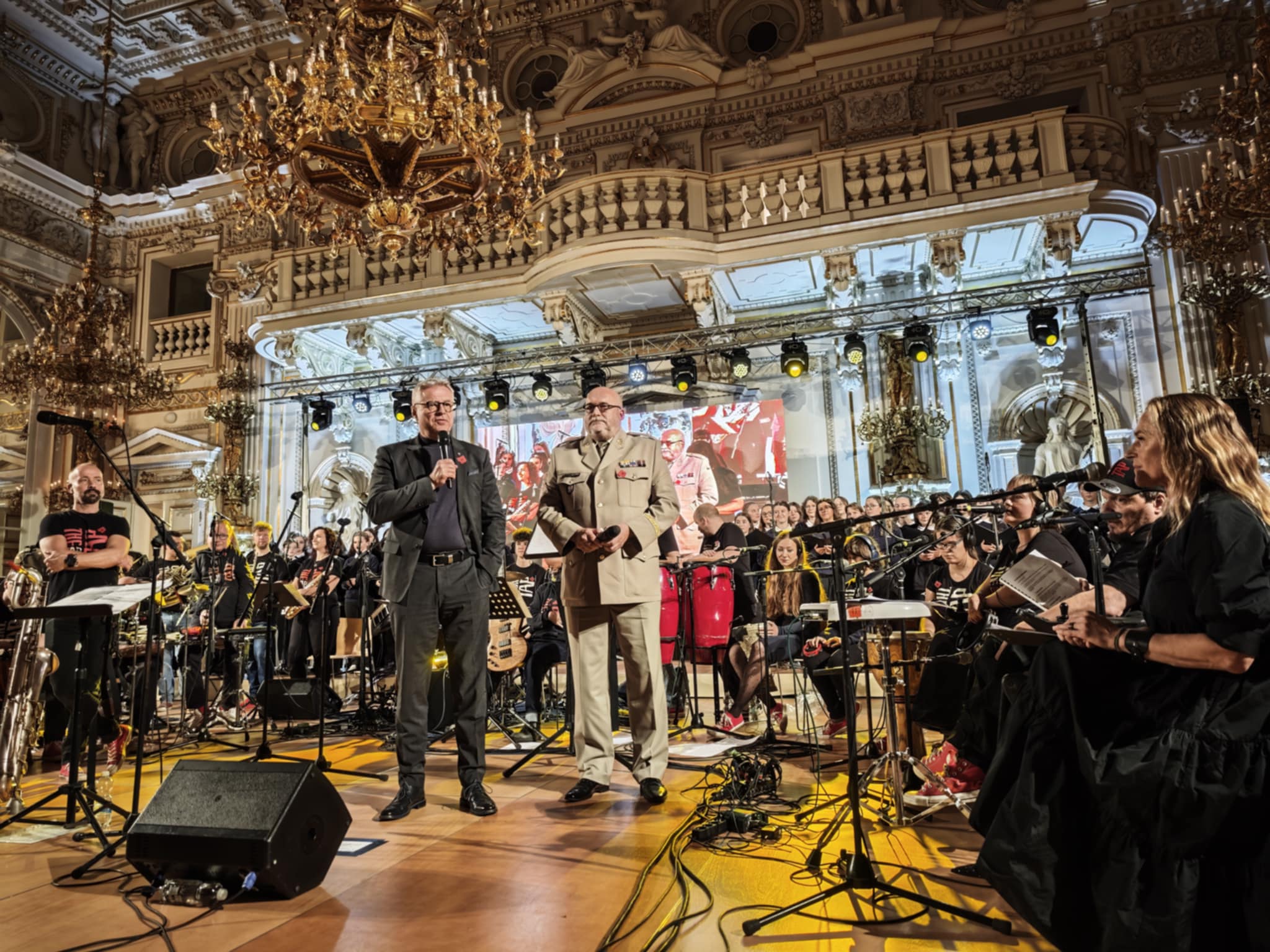 Možnost hovořit k téměř šesti stům hostů dostal na závěr koncertu i ředitel Vojenského historického ústavu Praha, brigádní generál Aleš Knížek. „Chtěl bych poděkovat všech válečným veteránům za jejich službu naší republice, a to nejen těm posledním desítkám žijících veteránů druhé světové války, ale i těm novodobým. Věřím, že se zde všichni sejdeme i příští rok a budeme v této tradici pokračovat. A děkuji rovněž partnerům a všem, kteří pomohli dnešní koncert uspořádat,“ řekl Aleš Knížek. Osobní příběh pak připojil i poradce prezidenta, diplomat Petr Kolář. „V každé zemi, ve které jsem coby velvyslanec sloužil, jsem měl příležitost setkat se něčím, co přesahovalo naši každodennost a často se to týkalo veteránů a jejich odvahy,“ řekl Petr Kolář. Prezident Petr Pavel udělil slavnostnímu večeru svoji záštitu.