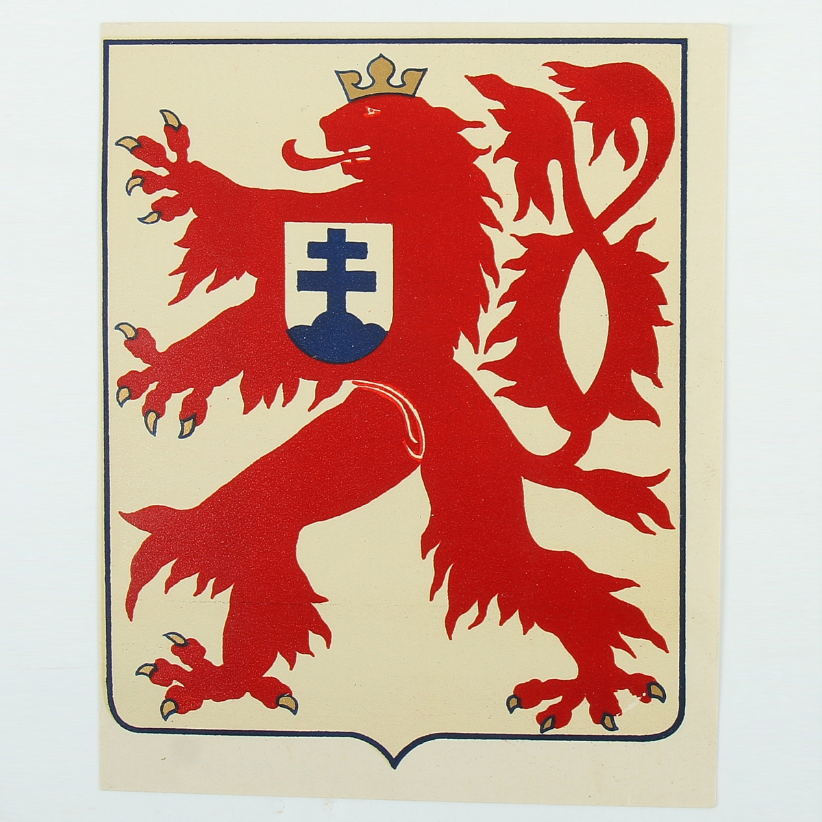 Červený československý lev se slovenským znakem na prsou v bílém poli erbovitého tvaru (tzv. řeznický lev) byl odvozen od malého čs. státního znaku. Používal se na technice československé samostatné brigády do roku 1943.