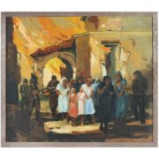 Olejomalba českého malíře Františka Besperáta (1900–1963) vznikla jako bezprostřední reakce na tragickou událost, která se odehrála v Lidicích v nočních hodinách 10. června roku 1942. Likvidace obyvatel této vesnice a její srovnání se zemí se uskutečnilo jako akt pomsty za atentát na Reinharda Heydricha. Scéna zachycuje bezbranné postavy lidických žen a dívek v okamžiku, kdy jsou příslušníky gestapa odváděny k transportu do Kladna. V pozadí hořící dům vytváří apokalyptickou atmosféru.