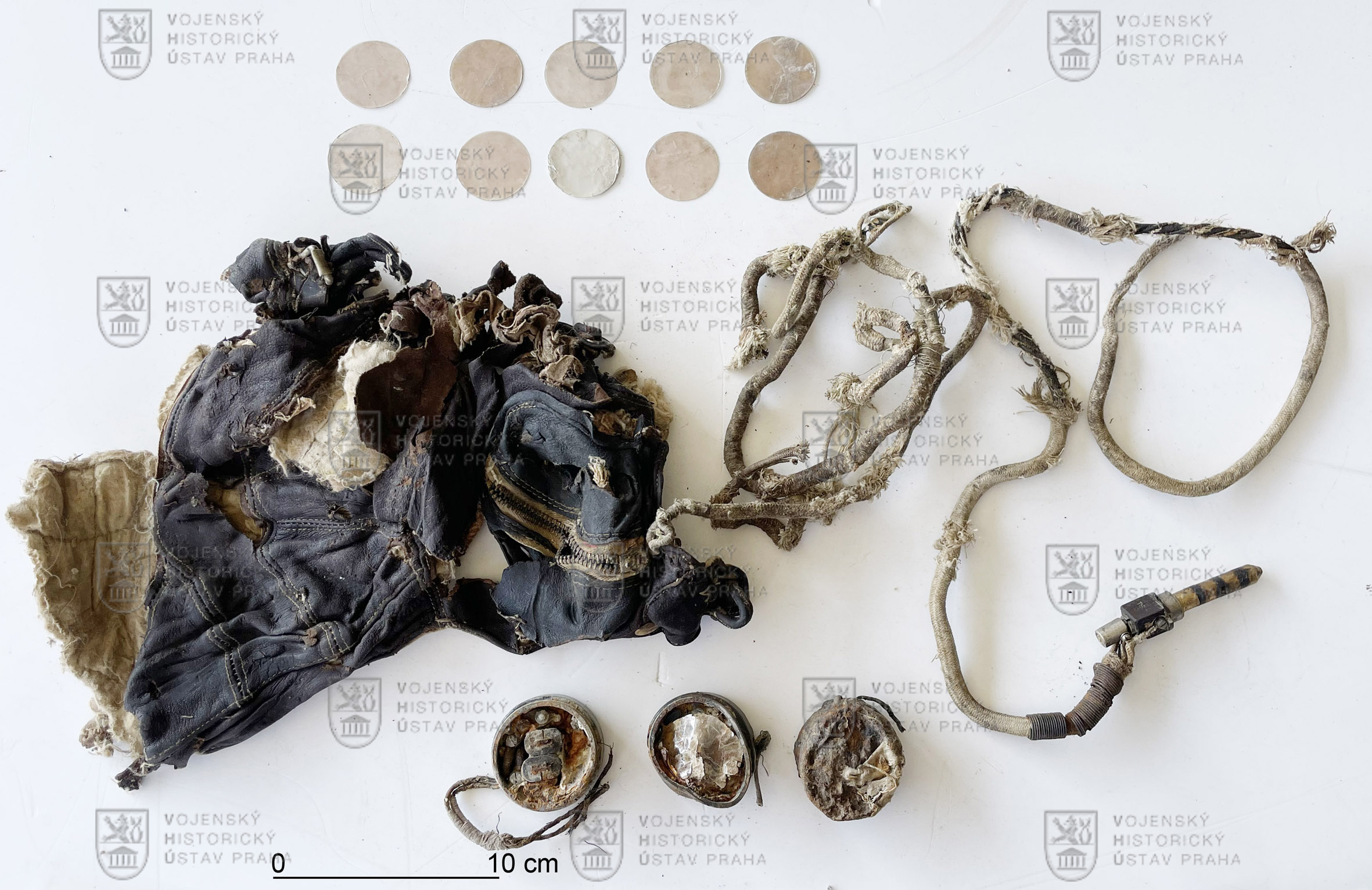 Mezi nalezenými předměty byly i součásti kožešinové výstroje v torzech, včetně téměř kompletní letecké kukly z usně, sluchátek a kabelu na připojení. Kulaté celuloidové vložky jsou ze sluchátek a jejich vibrace přenášely zvuk. Komu vybavení patřilo, není známo. Kukly vyráběla firma J. Compton Sons and Webb Ltd. se sídlem na Alexandra Road v Yeovilu, přičemž část továrních budov se zachovala dodnes.