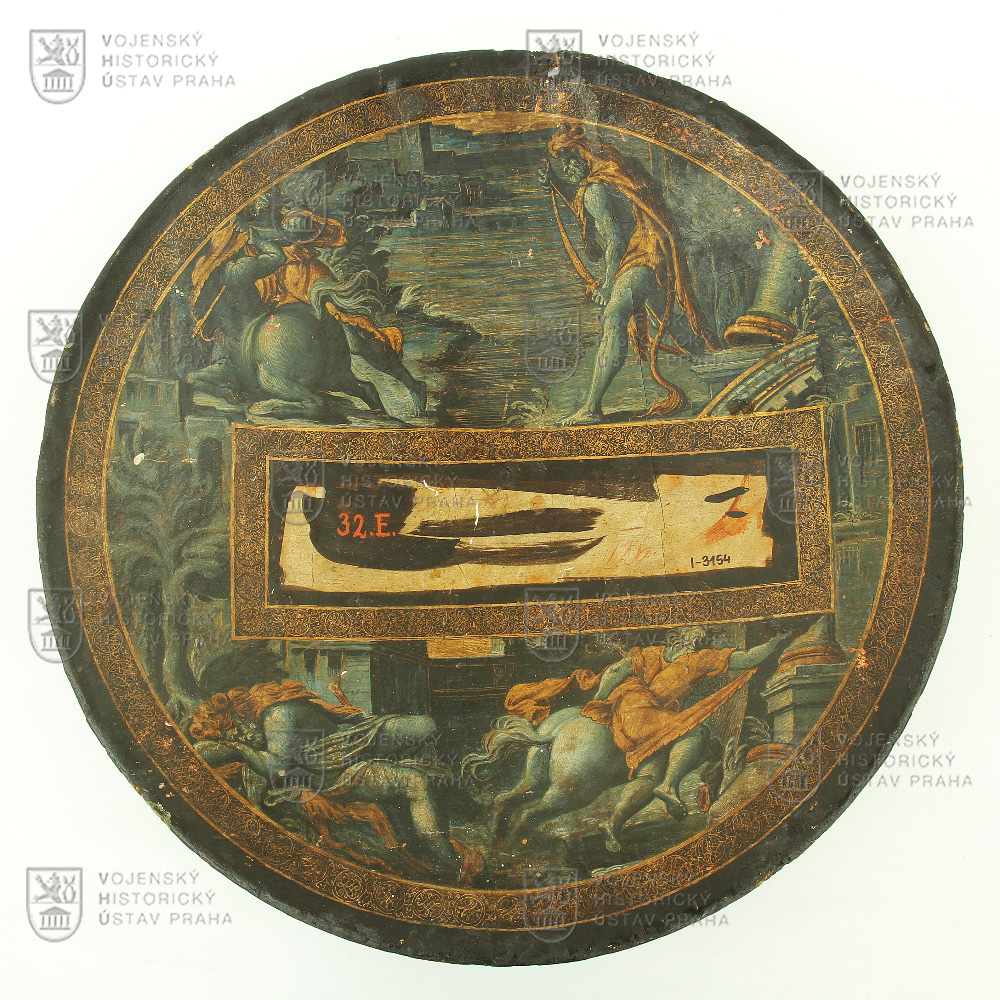 Dochované malované štíty nesou výzdobu v duchu italské renesance, manýrismu, případně raného baroka. Vedle ornamentálních prvků zaplňují největší plochu vnější i vnitřní strany štítů velkoryse koncipované figurální scény, jejichž témata byla odvozena z římských dějin nebo antické mytologie.