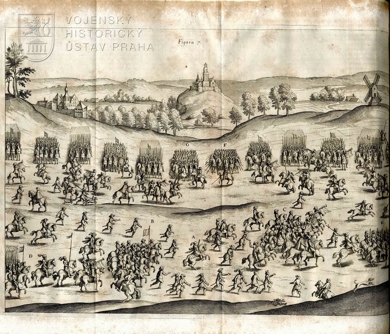 Za zmínku stojí též titulní bordura knihy. Ta je silně inspirována původním frontispisem z roku 1611. V její horní části vidíme na koni sedícího lancíře, zatímco ve spodní části proti sobě jedou a střílí arkebuzír a kyrysník. Figurální kompozici doplňují po stranách stojící mytické postavy, které personifikují válečnictví. Vlevo je to bohyně moudrého vedení války Athéna, vpravo bájný hrdina Héraklés. Hlavním rozdílem oproti původnímu frontispisu je přidané pozadí v podobě krajiny s bitvou. Dodejme, že též rytý titulní list německého vydání z roku 1625 obsahuje stejné ikonografické motivy až na obě antické postavy, které byly v jeho případě vynechány.