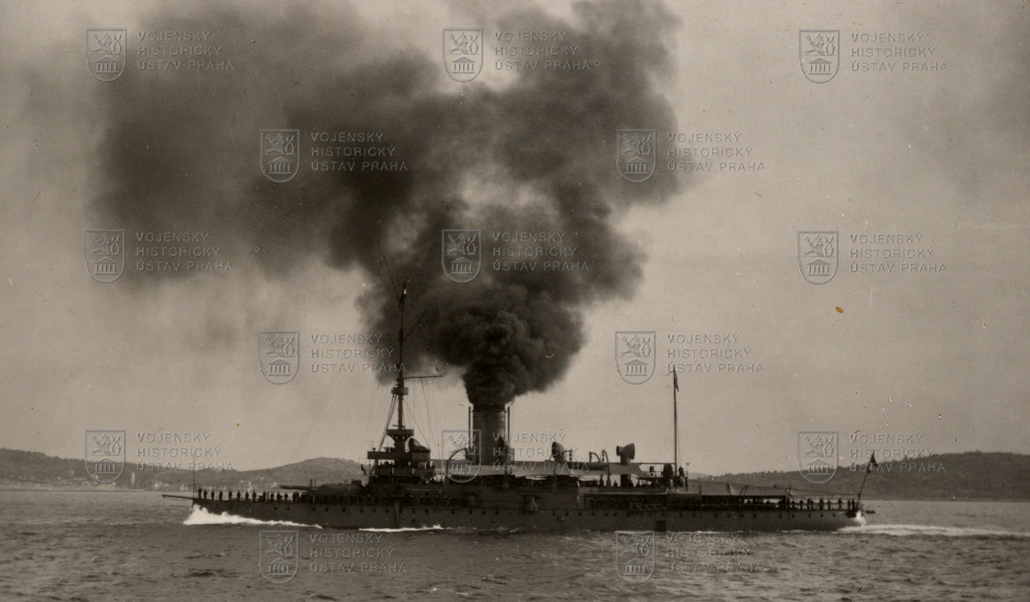 Snímek zachycuje pobřežní bitevní loď Wien, druhou jednotku třídy Monarch ze série tří plavidel. K založení jejího kýlu došlo v Terstu v únoru 1893, trup byl spuštěn na vodu v červenci 1895 a dokončená loď vstoupila do služby 13. května 1897.