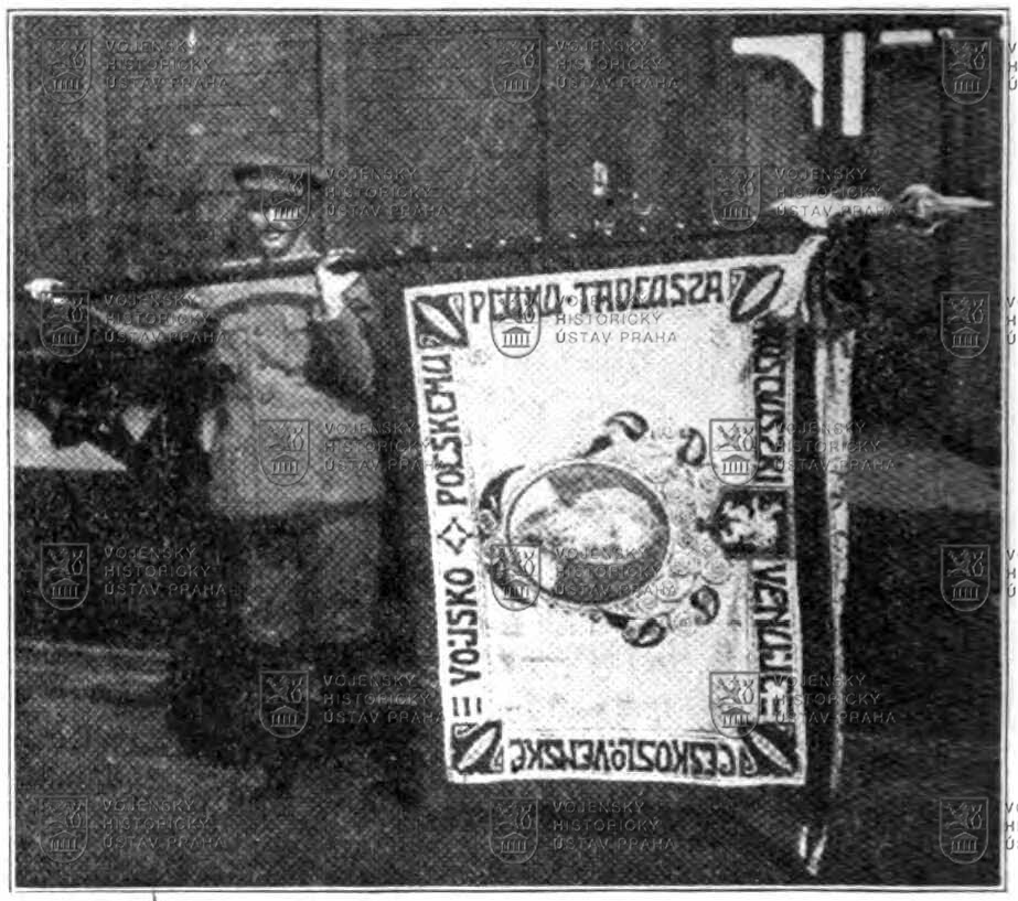 Prapor navržený Josefem Šeborem v sochařských dílnách západní skupiny čsl. vojsk na Sibiři zhotovili v ženském klášteře v Jekatěrinburgu. Měl být odevzdán 1. polskému střeleckému pluku „Tadeusza Kościuszki“ 5. polské střelecké divize na Sibiři.