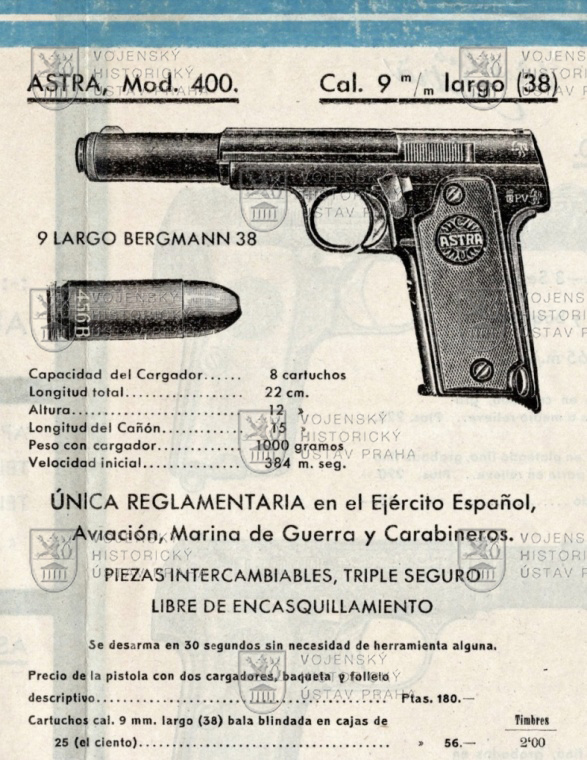 Španělská armáda v průběhu období monarchie a druhé republiky nakoupila okolo 35 000 pistolí M 400 a španělské námořnictvo jich odebralo 1 650. Složky carabineros nakoupily v průběhu let okolo 10 300 kusů. V roce 1930 se dostaly také do výzbroje chilského námořnictva, jež zakoupilo 851 pistolí.