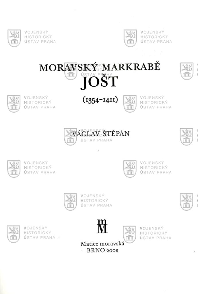 ŠTĚPÁN, Václav. Moravský markrabě Jošt (1354-1411). 1. vyd. Brno : Matice moravská, 2002. 828 s. ISBN 80-86488-05-5.