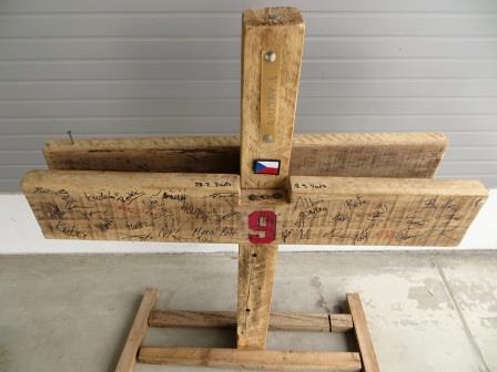 Stojan na taktickou a balistickou vestu má dřevěnou konstrukci z materiálu nalezeného vojáky v Mali. Jednotlivé části jsou spojeny hřebíky. Uprostřed stojanu je nakreslena velká červená devítka, která odkazuje na misi, ve které vojáci působili. Nad číslicí je připevněna malá vlajka ČR, která se nosí na stejnokrojích AČR. Na trámek, sloužící k uložení výstroje, se podepsali účastníci mise. Nad podpisy je datum 28. února 2017 až 8. září 2017.