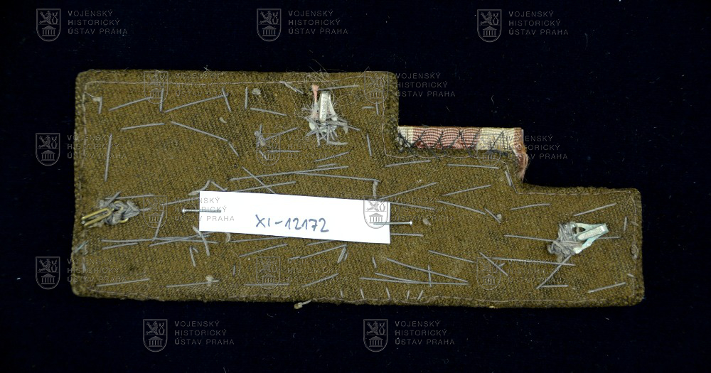 Stužky jsou na podkladu z hrubé tmavozelené látky o rozměrech 16 × 6 cm našity v celkem pěti řádcích. Zleva doprava a od nejvyššího po nejnižšího:
