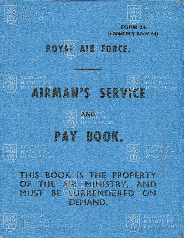 Českoslovenští letci zařazení během druhé světové války do řad Royal Air Force používali standardní vojenské knížky z inventáře britského letectva (Form 64 Airmanʼs Service and Pay Book). Jak název napovídá, dokument se dělil na dvě části – vojenskou knížku měl letec u sebe i v čase svého civilního života a sloužila jako vojenský identifikační doklad a záznam o výcviku, vyznamenání či očkování. Výplatní kniha byla vložena v kapse na zadním přídeští vojenské knížky a nosila se pouze po dobu aktivní vojenské služby; záznamy v ní sloužily jako doklad o vyplácení finančních náležitostí.