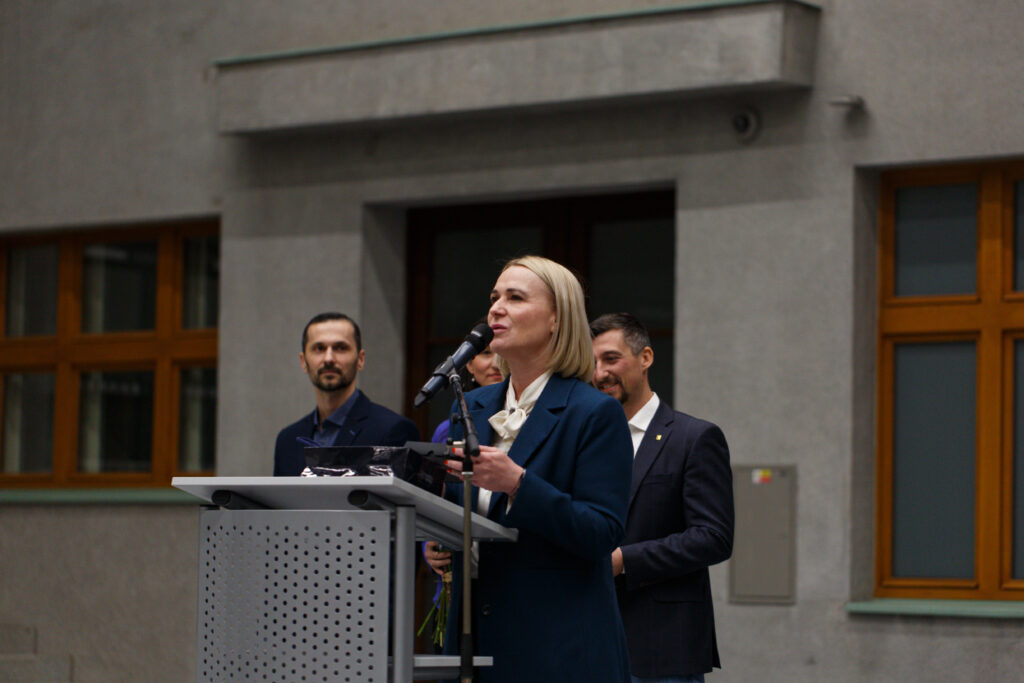 Druhou patronkou byla jeho manželka Dominika, třetí pak ministryně obrany Jana Černochová. Ta autorovi předala nůž s mottem acta non verba. Jana Černochová Petru Matoušovi nabídla práci ve chvíli, kdy odcházel z velení chrudimského pluku. „Nevěděl jsem, co se sebou. Paní ministryně mi podala pomocnou ruku a nabídla mi místo poradce,“ dodal Matouš.