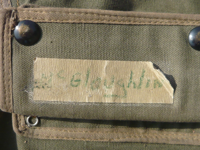 Při podrobnější prohlídce tkaniny obalu a popruhů bylo zjištěno, že padák byl vyroben už v dubnu 1944 a to firmou Switlik Parachute Company. Na obalu byla nalepena původní papírová páska s nepříliš zřetelným jménem uživatele Mc Glaughlin. Tento systém označování je u záchranných padáků běžný dodnes a zajišťuje se tak, že jeden letec létá vždy se stejným padákem.