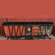 The actual field bakery wagon, based on which this model was made, served Czechoslovak legionnaires on the Trans-Siberian Railway in Russia between 1918 and 1920. According to one of the authors of the model, Colonel Josef Vavroch, a former army intendant of Czechoslovak units in Russia, the beginning of the use of train bakeries dates back to the spring of 1918 (the first one appeared in Pemza in April 1918). Soldiers used large freight cars to build the bakeries. The internal construction of the bakery was initially iron, covered with bricks. However, the iron ovens, manufactured in the company’s own workshops in Krasnoyarsk, did not prove successful, so brick ovens, lined with clay, were built. The furnace took about 2/5 of the car space and the remaining space was used for workshops and bread store. Well-built kilns lasted for a year and a half and small defects caused by shaking while driving or shifting would be repaired. Some train bakeries have travelled nearly eight thousand miles without serious repairs.