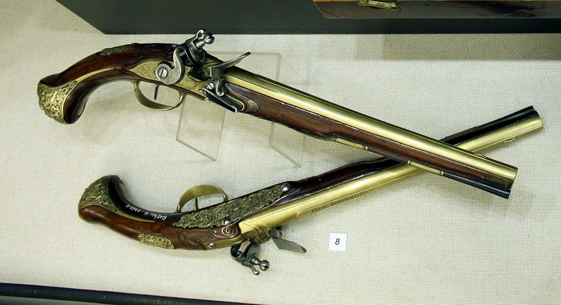 Milovníky zbraní jistě zaujeme i pár pistolí s francouzským křesadlovým zámkem. Pár pochází z období okolo roku 1740, z dílny Franze Breitenfeldera, příslušníka významné puškařské rodiny z Karlových Varů. Ten proslul vynikajícími výrobky, které dodával roudnickým Lobkowiczům, mnichovohradišťským Valdštejnům nebo rodině Thunů v Děčíně a Benátkách nad Jizerou. Breitenfelderové byli po několik generací příslušníky silného karlovarského puškařského cechu, jemuž svým významem mohl v průběhu 18. století konkurovat snad jedině puškařský cech pražský.