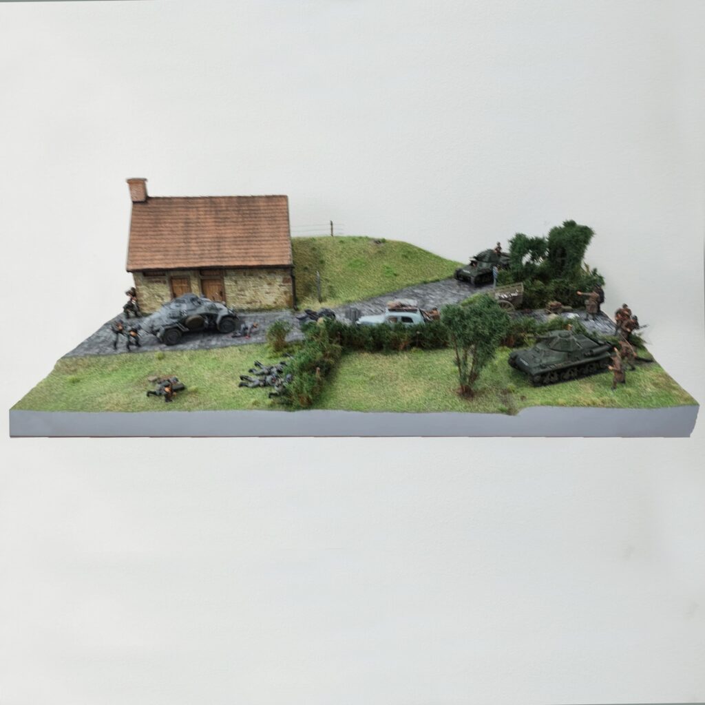 V úterý 11. června 1940 zaujala československá 1. ženijní rota obranu ve východofrancouzské obci Brion-sur-Ource. Ráno 14. června se potvrdily zprávy o proražení francouzských linií na řece Marně a rota se dle rozkazu stáhla jižním směrem. Na místě nechala jako zajištění jednu četu, která se samostatně stáhla v ranních hodinách 16. června. V té chvíli však už Němci přeťali u Arnay-le-Duc ústupovou cestu a od rána zde sváděli boje s ustupujícími francouzskými vojáky a četníky. Československá četa se do boje zapojila v odpoledních hodinách a jejich energicky vedený útok přinutil Němce k dočasnému ústupu a otevřel cestu na jih. Dioráma zachycuje počátek československého útoku na severní okraj obce s podporou dvou francouzských lehkých tanků Hotchkiss H-39.