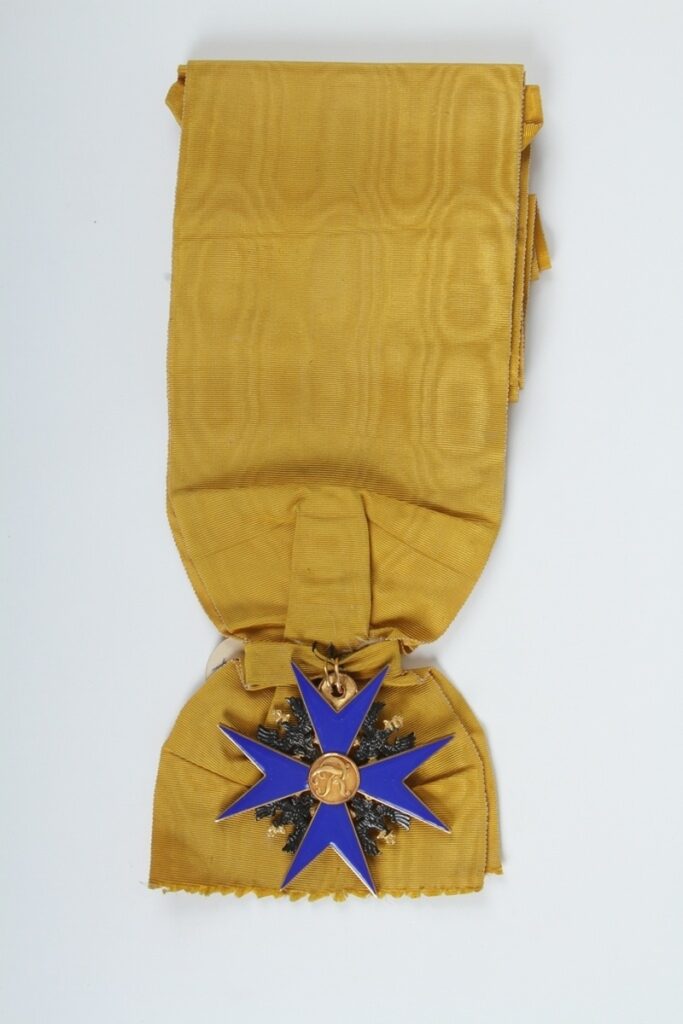 Řád byl založen prvním pruským králem Friedrichem I. den před jeho vlastní korunovací 17. ledna 1701. Řád se uděloval v jediné třídě za civilní či vojenské zásluhy a jeho udělení bylo tradičně spojeno s dědičným povýšením do šlechtického stavu. Původně byl určen výhradně nejvyšším hodnostářům království, později však byl udělován i příslušníkům cizí šlechty a jiných panovnických domů. Odznakem řádu je zlatý tmavomodře smaltovaný osmicípý kříž, mezi jehož rameny jsou korunované černě smaltované čtyři pruské orlice a ve zlatém středovém medailonu se nachází zlatá iniciála zakladatele F. R. (Fredericus Rex, Friedrich král). Osmicípá náprsní řádová hvězda s černou orlicí na středu nese v opisu řádové heslo: SUUM CUIQUE (Každému podle jeho zásluh). Řád existuje i v současnosti jako rodinný dynastický řád Hohenzollernů.