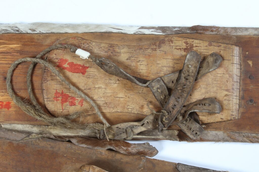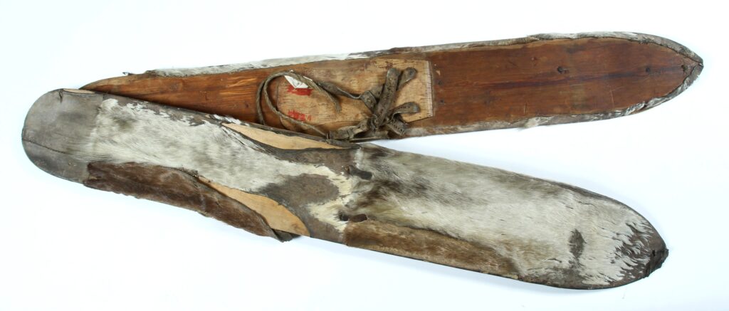 Dřevěné lyže arktického typu, špičaté na obě strany, jsou potažené sobolí kůží se srstí a mají kožené vázání. Kožešina byla připevněna na lyže srstí dozadu, aby se zabránilo jejich podkluzování a přitom jim byl umožněn skluz dopředu. Lyže původně sibiřských kmenů používali příslušníci Rudé armády při zimních operacích na sibiřské magistrále během občanské války (1917–1920). v květnu 1919 je v bojích u sibiřského Tajšetu (dnešní Irkutská oblast, Rusko) ukořistili příslušníci 1. československého střeleckého pluku „Jana Husa“. V roce 1920, po svém návratu do vlasti, je legionáři předali do sbírky Památníku odboje.