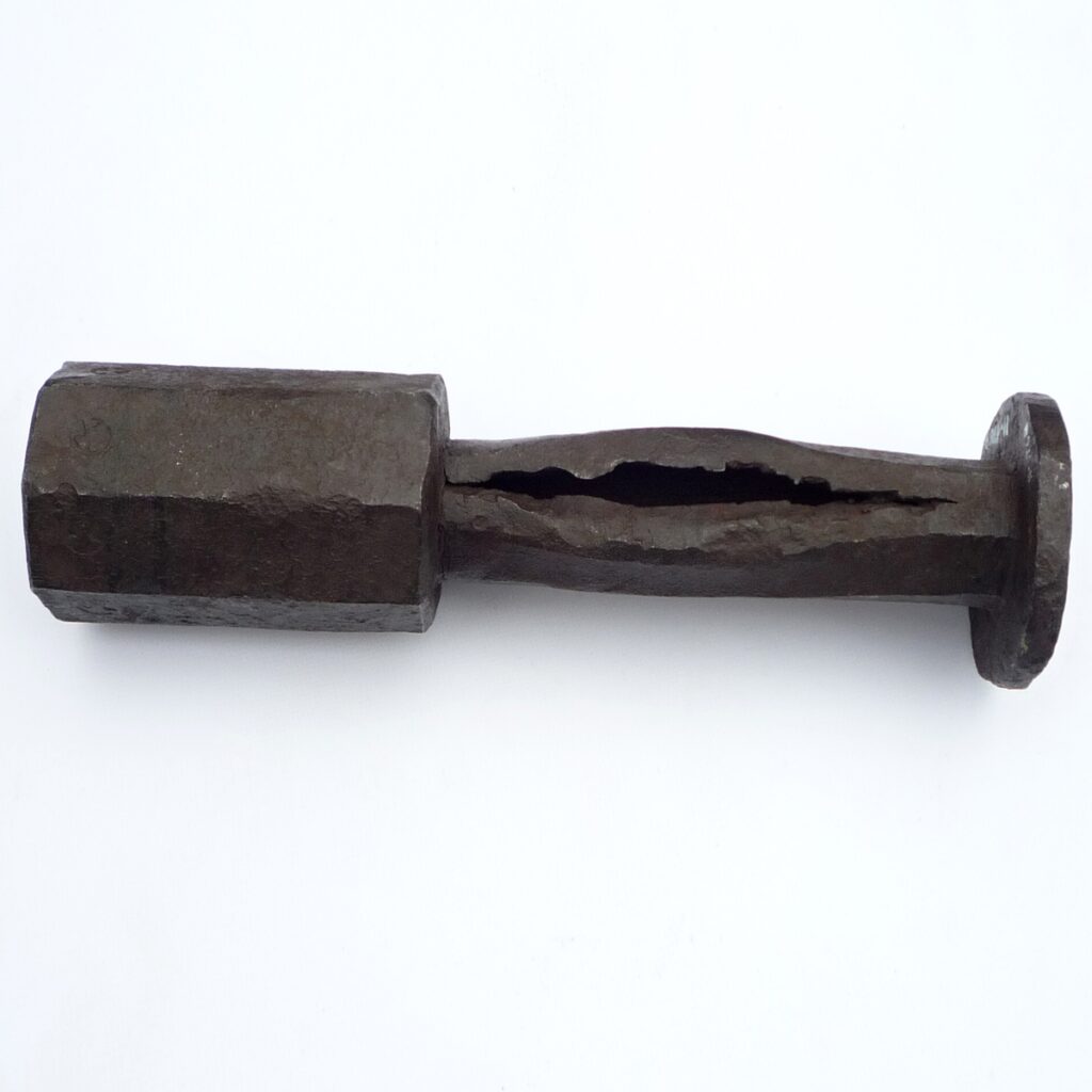 Kovaná, osmihranná hlaveň se zesílenou komorou a okrouhlým úsťovým prstencem je dokladem snahy o nalezení nejvhodnějšího tvaru palných zbraní v raném období jejich výroby. O malých zkušenostech a neúspěšnosti výrobce svědčí roztržení hlavně, k němuž došlo při výstřelu. Na zbrani se již objevila značka výrobce (zkřížená kladívka), záměrný kříž na horní straně sloužil současně jako pánvička na střelný prach.