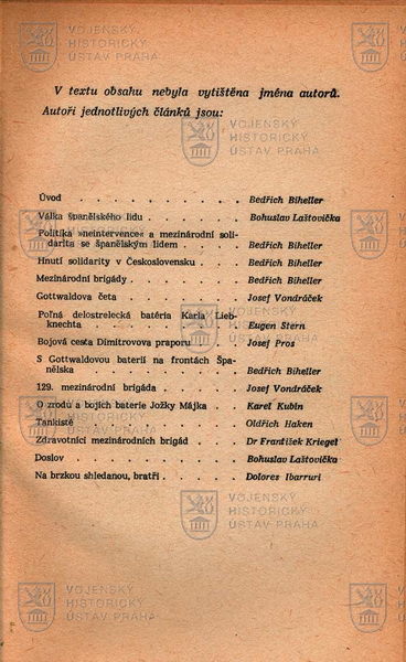 Bojovali jsme ve Španělsku: českoslovenští dobrovolníci mezinárodních brigád ve Španělsku 1936-1939. 1. vyd. Praha Státní nakladatelství politické literatury, 1957. 190 s.