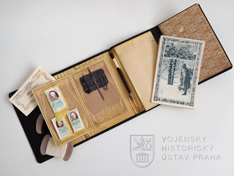 Prezentovanou sadu obdrželi o Vánocích roku 1915 rakousko-uherští vojáci, zotavující se v posádkové vojenské nemocnici v Brně nebo v některé z jejích filiálek. Sada má podobu malé knížečky v černých deskách, na kterých je vytlačen císařský orel a nápis "Weihnachten 1915 K.u.k. Garn.- Spital5 = Böhm. Gymnasium". Po rozevření sada obsahuje vlepené šití s portréty Viléma II. a Františka Josefa I., tužku, trhací bloček a zápisníček, dále jsou do ní vloženy čtyři dopisnice polní pošty a dvě vánoční pohlednice s motivem vojáka na stráži.