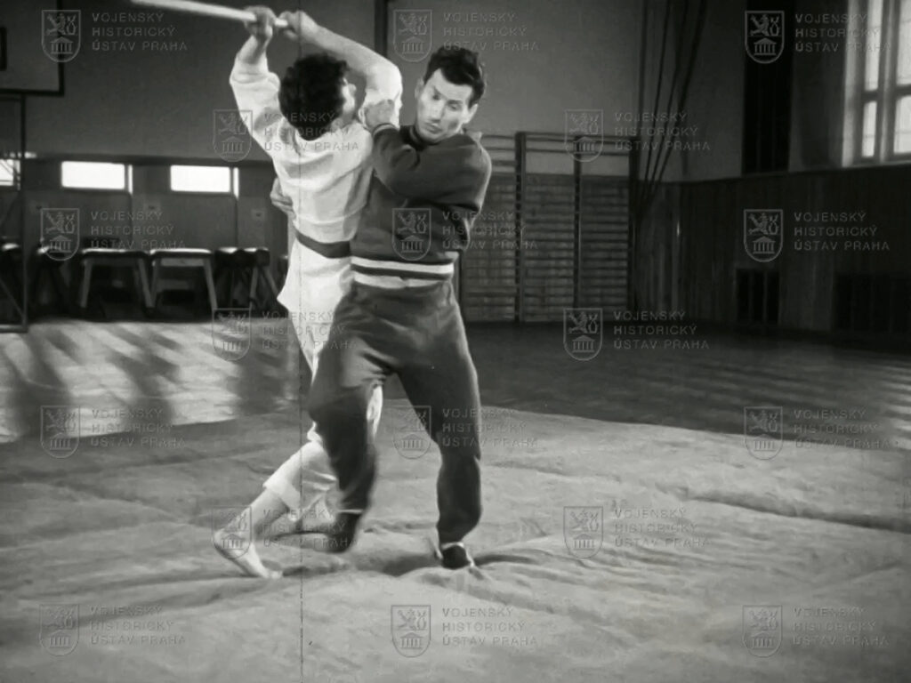Teprve druhá polovina se podobá instrukčnímu filmu. V prostředí tělocvičny jsou opakovány chvaty, které divák viděl v hrané úvodní scéně, ale bez bližšího vysvětlení, jen s využitím zpomalených záběrů a stručného komentáře. Nejsou zde použity ani přehledné animované sekvence, běžné v tehdejší výcvikové tvorbě ČAF (ČAFS).