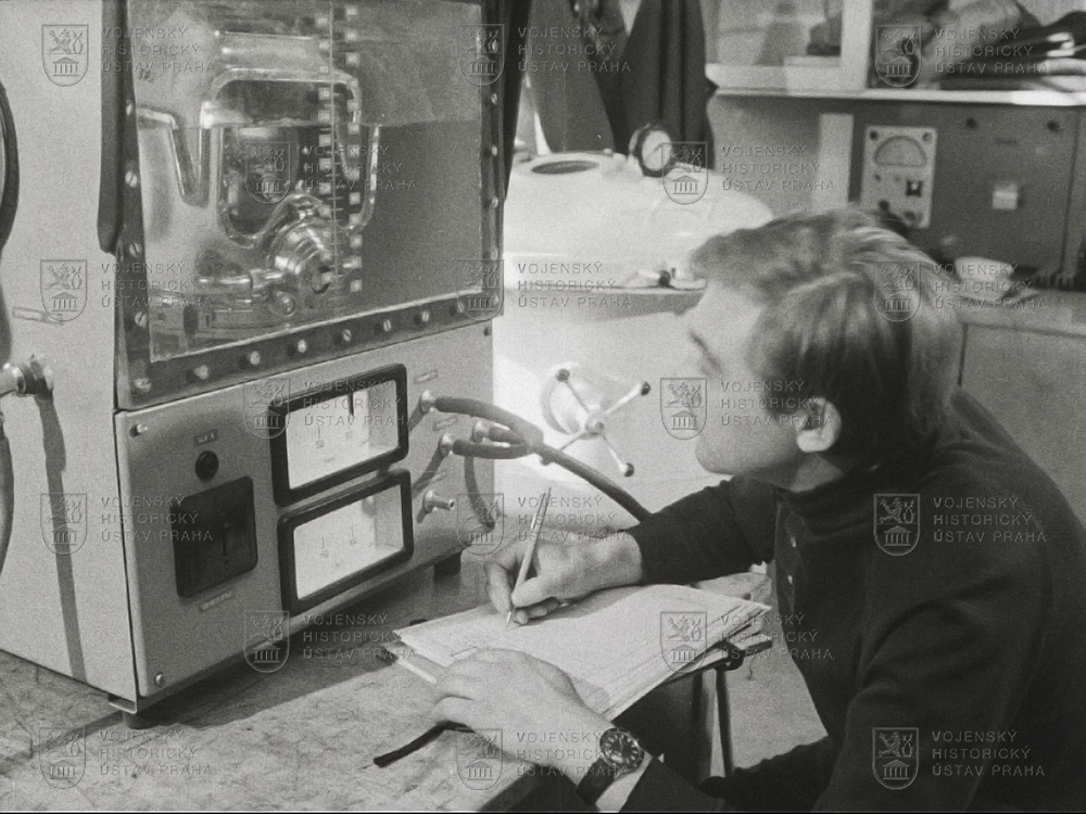 Krátká filmová reportáž z Armádního vědecko-technického magazínu číslo 1/1974 zavádí diváky do Státní zkušebny 212, k jejímž úkolům patřilo i ověřování funkcí potápěčské výzbroje. Dýchací přístroje, obleky, hloubkoměry a veškeré další vybavení potápěčů musely být dokonale přezkoušeny. Právě je testována nová potápěčská přílba československé výroby, u které se provádí zkouška těsnosti a měření funkce vdechových a výdechových ventilů. Ve zkouškách je i nová dekompresní komora pro jednu osobu, v níž je možné vytvořit umělý přetlak až do šesti atmosfér. Bude mít velký význam pro zajištění bezpečnosti potápěčů a v případě nehody může posloužit k přepravě postiženého do nemocnice. Státní zkušebna také seznamuje s novou výstrojí potápěče různých organizací. Dokonalé ovládnutí této techniky má význam nejen pro práci pod vodou, ale i pro bezpečnost a zdraví potápěčů.