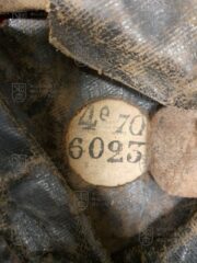 Képi z vlněného sukna je na okolku tmavomodrého odstínu, dýnko má červené. Mezi jednotlivými barevnými díly jsou našity lemovky modré barvy. Štítek je ze silné, černě lakované kůže obdélníkového tvaru, podšívka lněná s vysokým koženým potítkem. Kožená je i rubová stran dýnka, kde je natištěné číslo vojáka. Na okolku v přední části képi se na malém soukenném obdélníku tmavomodré barvy nacházelo číslo pluku, v tomto případě francouzského 54. pěšího pluku.