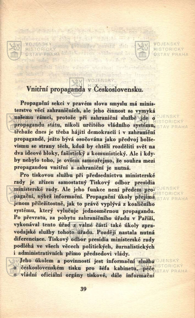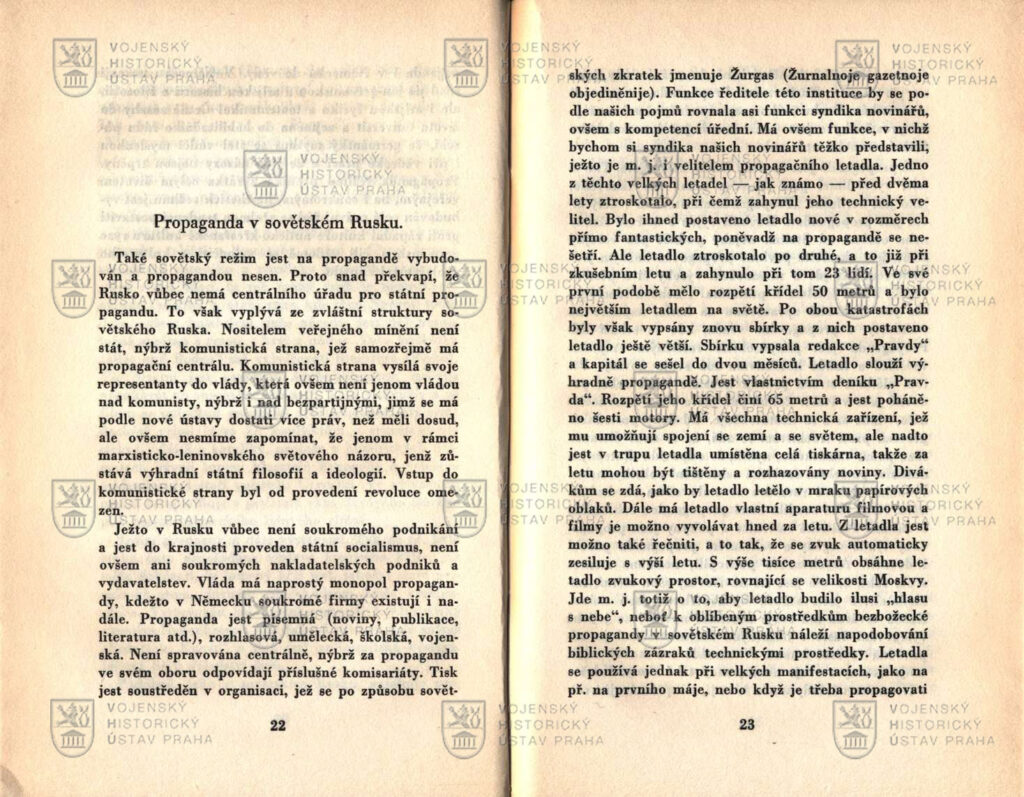Jeho dnes prezentovaná kniha je jednou z posledních monografií, které vyšly za jeho života. Vznikla z cyklu přednášek připravených pro Svobodnou školu politických nauk a z novinářských statí uveřejňovaných v časopise Svět mluví. Za zmínku stojí obecný úvod k historii propagandy a snah o ovlivňování mas. Vznik pojmu má totiž svoji českou stopu. Objevil se v souvislosti s úřadem Sacra Congregatio de propaganda fide, tedy Posvátné Kongregace pro šíření víry, založeným 14. ledna 1622. Šlo o katolickou reakci na české stavovské povstání a začátek třicetileté války, který se nesl primárně v duchu náboženských svárů mezi protestanty a katolíky. Kongregaci byly podřízeny všechny misie i papežské semináře. Vedle aktivit v zámoří bylo hlavní úsilí propagandy směřováno v rámci rekatolizace na země Koruny české.
