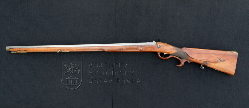 U této lovecké pušky je zásobník s třaskavou složí umístěn na zámkové desce a táhlem spojen s kohoutem. Při natažení kohoutu se ze zásobníku přemístí část třaskaviny do malé prohlubně (pánvičky), do níž po stisknutí spouště udeří kohout. Nahoře má zásobník odklopný kryt plnícího hrdla. Zbraň má na zámkové desce značení DIETRICH, výrobcem je nejspíše bratislavský puškař Vilém Dietrich, činný v letech 1819-1844.
