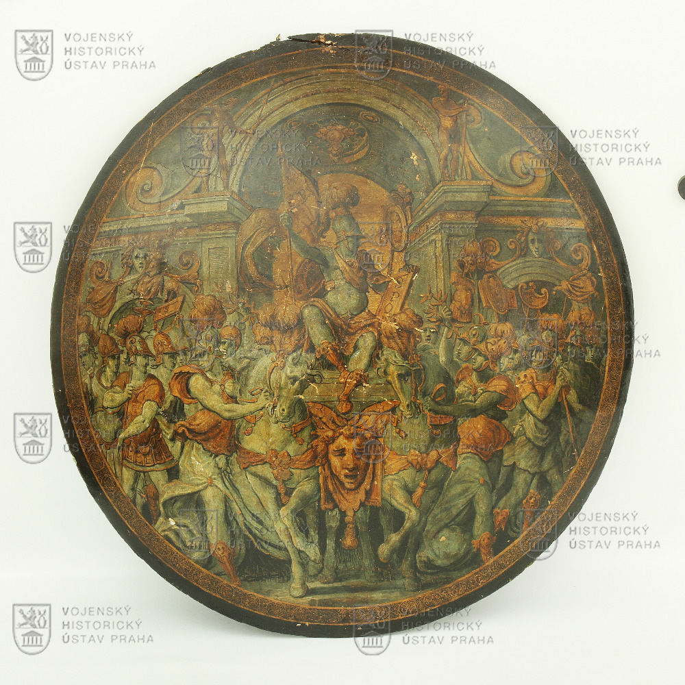 Dochované malované štíty nesou výzdobu v duchu italské renesance, manýrismu, případně raného baroka. Vedle ornamentálních prvků zaplňují největší plochu vnější i vnitřní strany štítů velkoryse koncipované figurální scény, jejichž témata byla odvozena z římských dějin nebo antické mytologie.