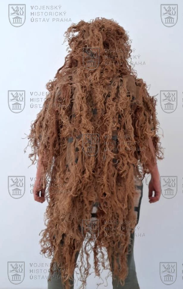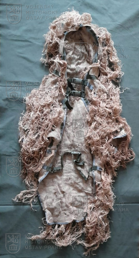 Maskovací převlečník je vyroben z jutové pytloviny, obšité zesilujícím lemem. Pro snadné oblékání přes stejnokroj a výstroj je vpředu zapínání pomocí plastových přezek. Převlečník kryje hlavu, záda a ramena, přední část je volná a umožňuje snadný přístup k vestě či nosnému systému. Celý povrch je pošit poutky, na nichž jsou navázány jutové provázky.