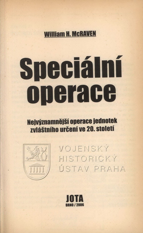 McRAVEN, William H. Speciální operace. 1. Praha: Jota, 2006. 394 s. ISBN 978-80-7217-442-3.