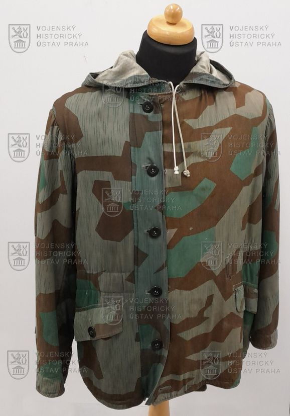 Představovaný exemplář z pozdější etapy války je vyroben z jemné maskovací tkaniny s potiskem používaným v německé armádě již od počátku třicátých let. Velmi dobře jsou patrné odlišné odstíny použitého materiálu. Bunda již není oboustranná a podšívka je vyrobena z šedé viskózové tkaniny. Knoflíky jsou typické pro stejnokroje německého letectva. Na nadloktí obou rukávů jsou knoflíky umožňující připevnění barevných rozlišovacích prvků.