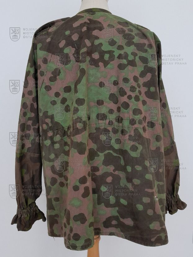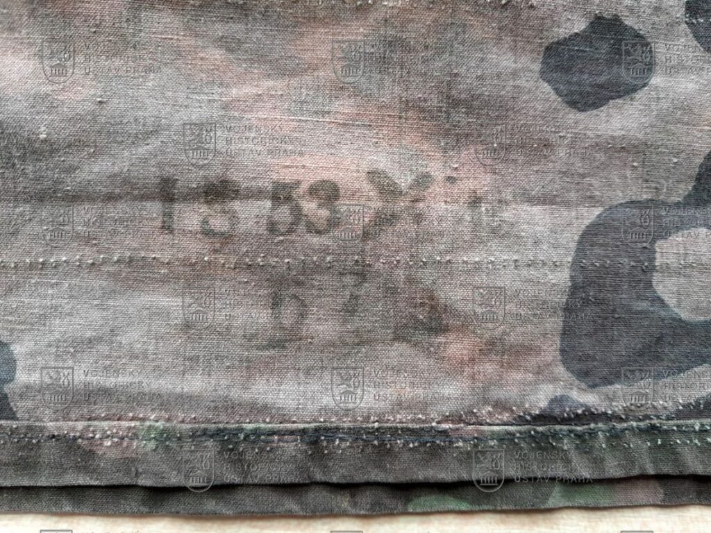 Zobrazený exemplář z bavlněné celtoviny byl vyroben ve druhé polovině války. Jde o jedno z posledních provedení převlečníku, charakteristické tím, že místo původních průvleků mělo již šikmé vnitřní spodní kapsy a poutka na připevnění dodatečného maskování. Převlečník byl koncipován jako oboustranný, z jedné strany s převažující zelenou, z druhé pak s odstíny podzimních barev. Na výrobu bylo použito více odstínů maskovací tkaniny. Lemování límce, příklopky kapes a konce rukávů jsou tištěné sítotiskem, zatímco základ je tištěn válcem se sítotiskovým černým přetiskem. Přestože jednotlivé maskovací vzory neměly své oficiální názvy, vžilo se pro tento typ přetisku označení „platan“.