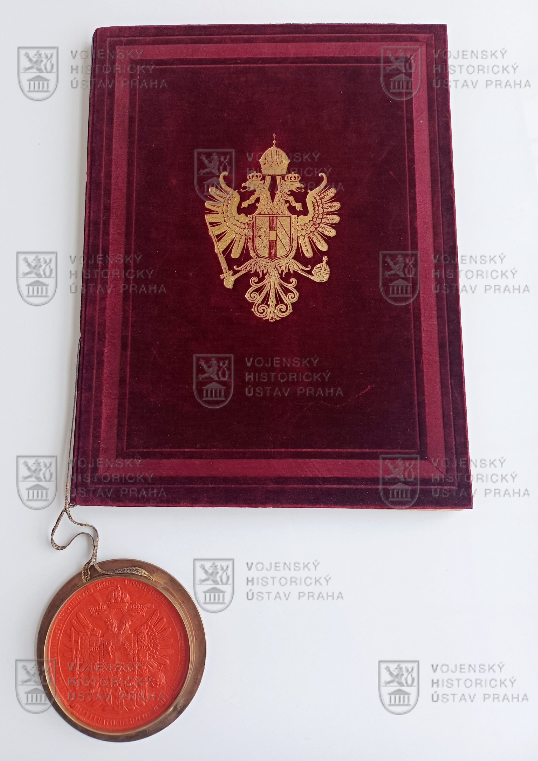 Nobilitační dekret vydaný 3. 9. 1915 je uložen v deskách potažených fialovým sametem a ozdobených císařským orlem. Uvnitř se nacházejí jednotlivé listy dekretu, ručně vyhotovené na pergamenu, jež představují samy o sobě zdařilé umělecké dílo. Zajímavá je především podoba malovaného erbu s koněm v červeném poli a třemi šesticípými hvězdami, odkazujícími na židovský původ majitele. Součástí dekretu je pečeť a pocínovaná kazeta. Dekret doplňují další papírové dokumenty, mezi nimiž vyniká opis dokumentu s krátkým životopisem, který vznikl zřejmě jako podklad k nobilitaci. Ve sbírce VHÚ Praha se obdobný dokument dosud nenacházel, jedná se přitom o velmi atraktivní doklad možného společenského vzestupu rakousko-uherských důstojníků.