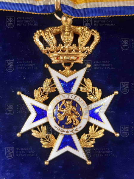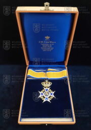 Stříbrný a zlacený klenot o hmotnosti 34 g má tvar maltézského kříže podloženého vavřínovým věncem a hroty cípů kříže jsou zakončeny kuličkami. Kříž při rozpětí 55 mm o síle 2-10 mm je z modře smaltovaných ramen s bílým rámováním, převýšený pohyblivým závěsem v podobě koruny o výšce 30 mm a šířce 36 mm. Kruhový středový medailon je modře smaltovaný s bíle smaltovaným mezikružím. Na aversu nese medailon nizozemského lva a v mezikruží opis: JE MAINTIENDRAI (vytrvám). Na reversní straně se v medailonu nachází litera „W“ připomínající královnu Wilhelminu a v mezikruží opis: GOD ZIJ MET ONS (Bůh s námi). Klenot je zavěšen na 38 mm široké oranžové nákrční stuze s bílým a modrým pruhem při okrajích. Dekorace je uložena v původní etui.