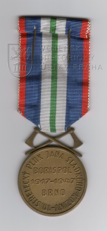 Pamětní medaile byla založena při příležitosti 30. výročí vzniku pluku v roce 1948. Je ražena z bronzu v průměru 39 mm při síle 2 mm. Plochu aversu zaujímá na střed umístěná mírně nakročená postava Jana Sladkého Koziny. Je oblečena v chodském kroji, v pravici drží čakan opřený o zem. Pokrčená levá ruka drží svitek chodského práva. Vedle Kozinovy levé nohy sedí pes s hlavou otočenou k levému okraji. Kozina stojí na rovné ploše, která je znázorněna úsečí v dolní části medaile. Revers je tvořen středovým nápisem: BORISPOL /1917–1947/ BRNO a opisem při okraji medaile: 10. STŘELECKÝ PLUK JANA SLADKÉHO–KOZINY. Stuha medaile je netypicky zavěšena za lištu propojující konce chodských čakanů. Ty jsou překříženy a tvoří převýšení medaile.