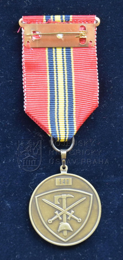 Na střed plochy umístěn znak Vojenských hasičských jednotek. V ploše odznaku nad znakem Vojenských hasičských jednotek číslo odznaku: 141.