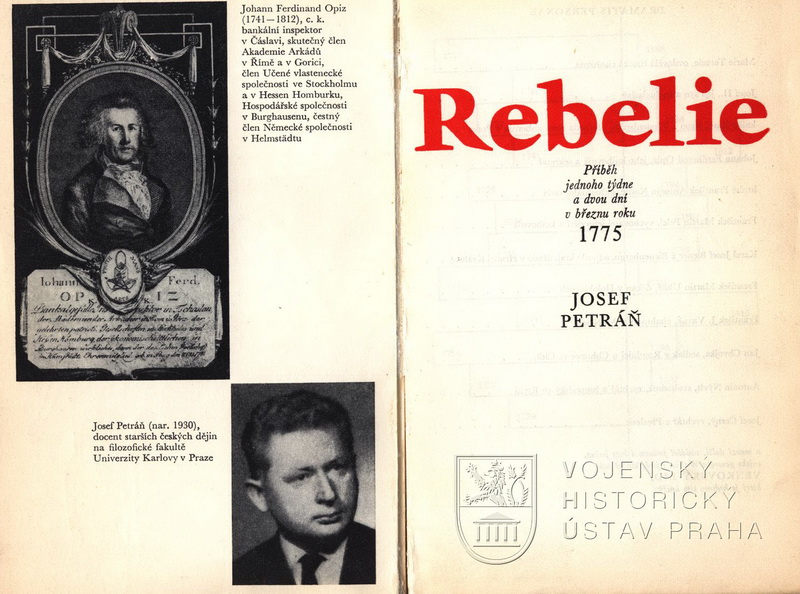 PETRÁŇ, Josef. Rebelie : příběh jednoho týdne a dvou dní v březnu roku 1775. Praha : Československý spisovatel, 1975. 259 s.