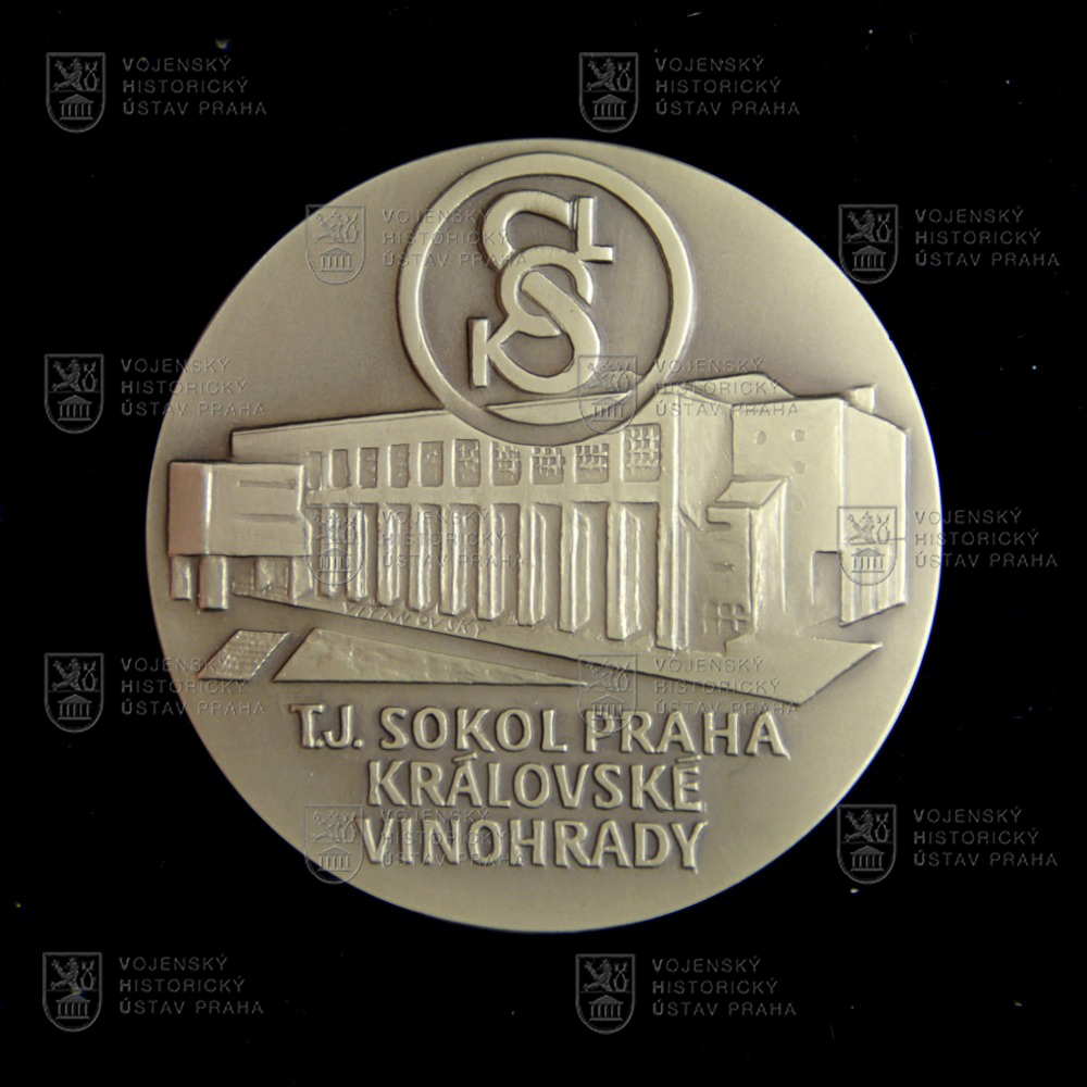 Reverzu dominuje veduta budovy Sokola na Královských Vinohradech, převýšená znakem Československé obce sokolské. Ve spodní části je dělený nápis T. J. SOKOL PRAHA / KRÁLOVSKÉ / VINOHRADY.