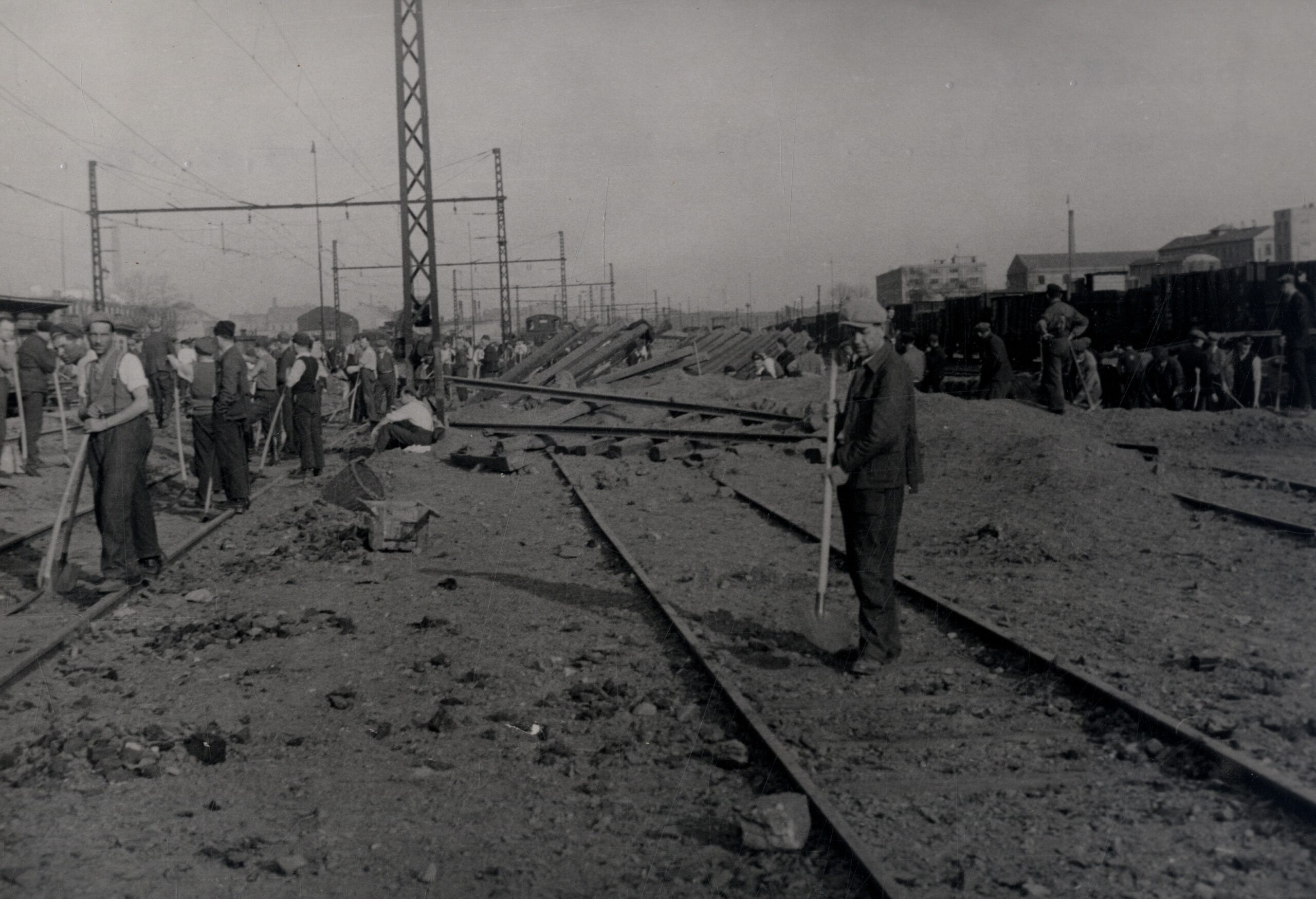 Snímek, zachycující odklízení následků bombardování Libeňského nádraží z března 1945, patří do konvolutu snímků pořízených Stanislavem Maršálem. Spojenecké pumy dopadly 25. března 1945 na průmyslovou oblast v severovýchodní části města. Hlavním cílem byly komplexy v Libni a Vysočanech, především provozy Českomoravských strojíren a. s. (dříve ČKD), které během války nesly též německý název Böhmisch-Mährische Maschinenfabrik AG. V továrnách se vyráběly zejména stíhače tanků Jagdpanzer 38 Hetzer a také šlo o jednu z posledních, dosud nepoškozených velkých zbrojovek na území ovládaném Němci. Dalším cílem byla vysočanská letecká továrna Aero a několik letišť v okolí.