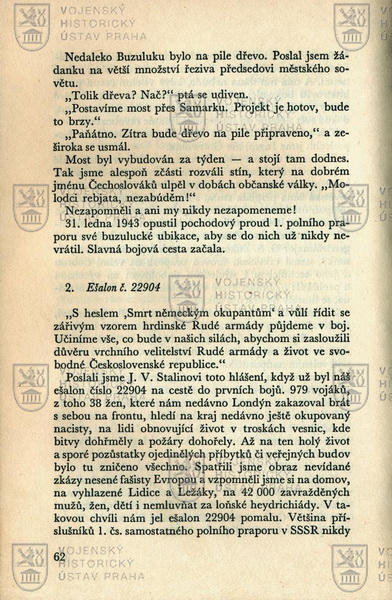 Dne 30. ledna roku 1943 vyrazil 1. československý samostatný polní prapor v SSSR v čele se svým velitelem, čerstvě povýšeným plukovníkem Ludvíkem Svobodou, z Buzuluku na frontu ke svému prvnímu bojovému nasazení. Začala tak jeho bojová cesta z Buzuluku do Prahy, jak později pojmenoval svoji memoárovou knihu sám Ludvík Svoboda. Že se jednalo o mimořádně náročnou pouť, dnes již snad není třeba zdůrazňovat. Československé vojsko v SSSR se během ní rozrostlo z praporu na velikost armádního sboru, prošlo řadou krvavých bitev: počínaje bojem u Sokolova přes bitvu o Kyjev, střety u Žaškova a Bílé Cerekve, boje na Dukle, u Jasla a Liptovského Mikuláše až po osvobození Ostravy, Vsetína, Břestu a dojetí 10. května 1945 do Prahy. Naši vojáci se přitom podíleli na obraně a osvobození dnešní Ukrajiny, Polska, Slovenska a České republiky.
