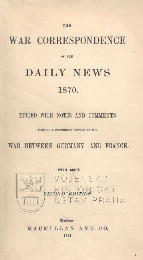 The War Correspondence of the Daily News 1870: edited with notes and comments: forming a continous history of the war between Germany and France. Second Edition. London: Macmillan and Co., 1871, 430 s., [4] mp.