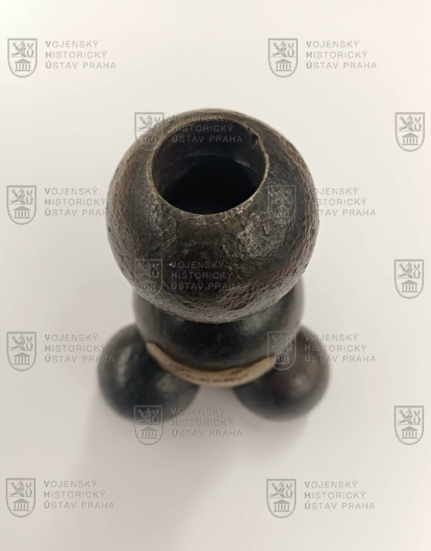 Díky rychlému rozvoji telegrafu byla krymská válka první, kterou mohlo domácí publikum sledovat téměř v „přímém přenosu“. S tím souvisela i zvýšená poptávka po suvenýrech. Prezentovaný předmět sloužil zřejmě jako kalamář a je vyroben z dělostřelecké munice nalezené na bývalém bojišti. Základnu tvoří tři koule o průměru 35 mm, které nesou dvě větší o průměru 42 a 47 mm. Na prostřední se nachází mosazná cedulka s nápisem „Pamjať Sevastopolja“, na horní je vyvrtaný otvor o průměru 21 mm, který zřejmě sloužil na inkoust nebo svíci. Lze předpokládat, že tyto předměty se v Sevastopolu nabízeli turistům ještě dlouhá desetiletí po skončení války.