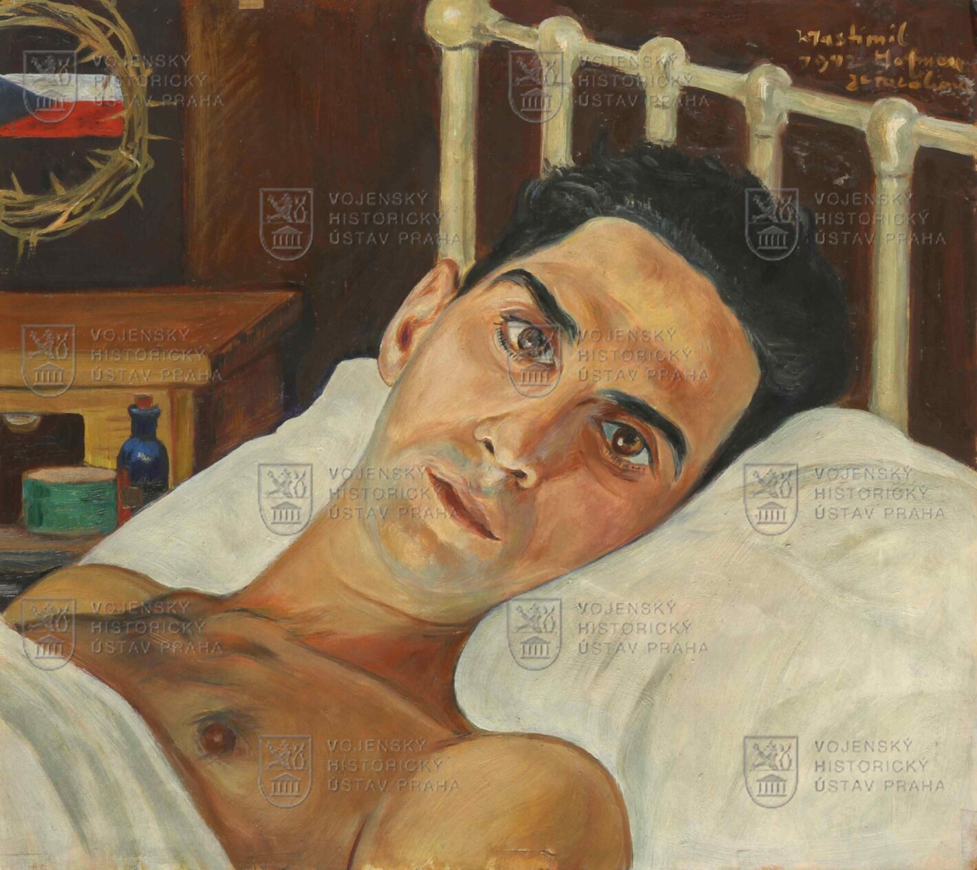 Prezentovaná olejomalba je dílem malíře česko-polského původu Vlastimila Hofmana (1881–1970). Zachytil zde velice sugestivní formou vojína Jindřicha Blažka, příslušníka Čs. pěšího praporu 11 – Východního, v době, kdy se léčil po zranění v sanatoriu v Jeruzalémě. Umělec se na svých portrétních malbách soustředil zvláště na výraz očí. V Blažkově pohledu je znát víra v uzdravení, avšak jeho osud byl bohužel tragický, neboť zraněním podlehl.