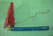 Šlo o těleso ogiválního tvaru vylisované z tvrdého plastu a opatřené třemi stabilizačními plochami. Jeho dolní konec byl opatřen jednoduchou tryskou a úchytnou přírubou. Horní pak kaučukovou špičkou, zajišťující stabilizaci letu a bezpečnost při nárazu. Doplňkem raketky byla klasická modrá kovová hustilka Velamos, opatřená zpětným ventilkem a vypouštěcím zařízením. Dále pak malý plastový pohárek na vodu, sloužící zároveň jako odměrka potřebné kapaliny.