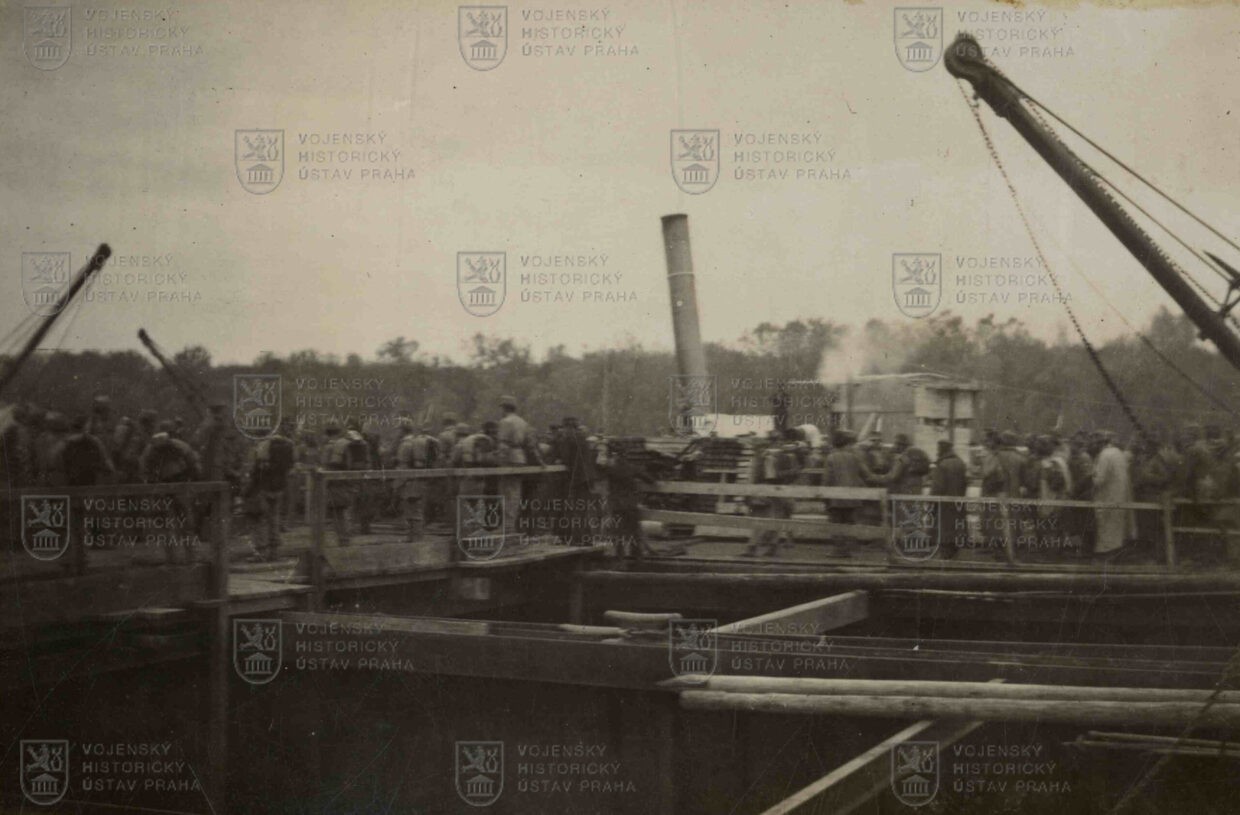 Snímek pořízený v roce 1914 zachycuje vojáky Zeměbraneckého pěšího pluku č. 8 spolu s dalšími rakousko-uherskými vojáky při přepravě přes Drinu. Zeměbranecký pěší pluk byl jedním útvarů rakousko-uherské armády, zformovaných na území Čech z vojáků převážně české národnosti. Do Velké války vytáhl hned zkraje konfliktu a byl vržen do krvavých bojů na srbské frontě.