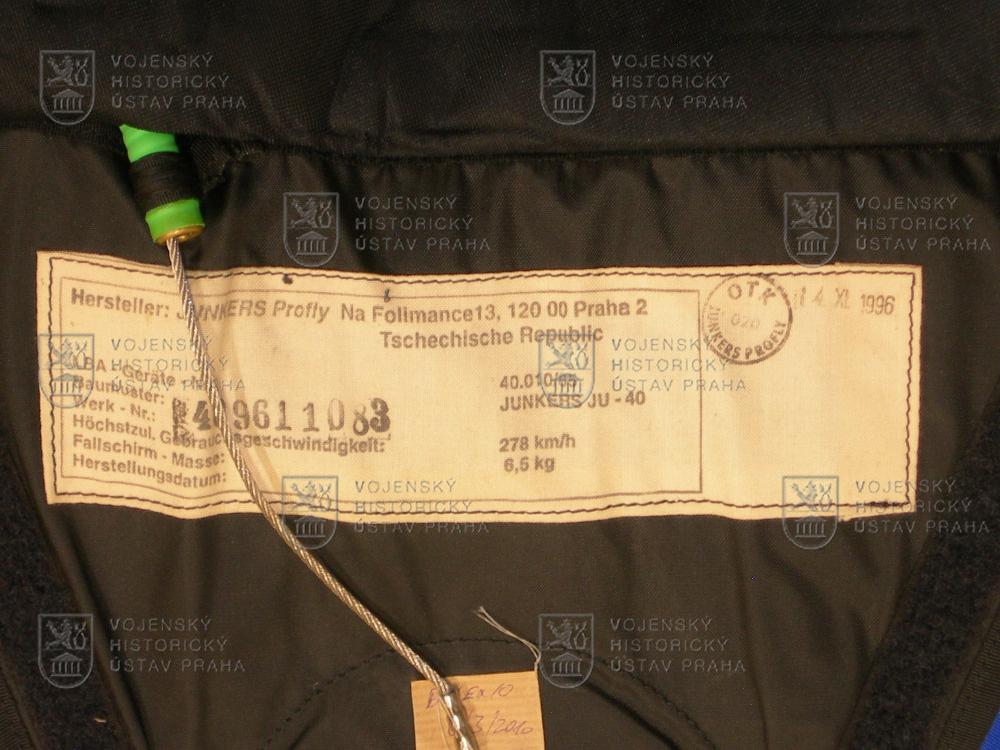Záchranný padák Ju 40 od firmy JUNKERS Profly byl primárně určen pro piloty bezmotorových a malých motorových letadel. Výrobce nabízel zákazníkům jak zádovou, tak sedací verzi padáku. Umožňoval opuštění letounu do rychlosti 278 km/h, při celkové hmotnosti letce maximálně 105 kg. Pomocí zátěžové figuríny byl ale testován až do hmotnosti 126 kg při rychlosti vypuštění 335 km/h. Je zajímavé, že tento typ byl používán i v naší armádě, kde jeho maximální povolené zatížení bylo zvýšeno na 120 kg.