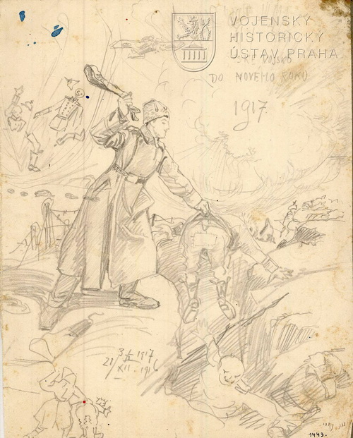 Český fotograf a malíř František Parolek je autorem novoročenky k válečnému roku 1917. Jednoduchou tužkovou skicu vytvořil…