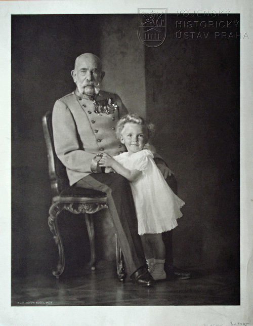 Oficiální fotografie vídeňského dvorního ateliéru Kosel představuje komorní záběr císaře Františka Josefa I. (1830–1916) ve společnosti…