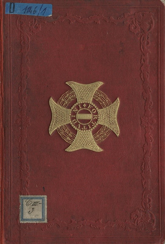 Medaile kruhového tvaru, zavěšená na stuze, ražená v kovu stříbrné barvy o průměru 40 mm. Do středového…
